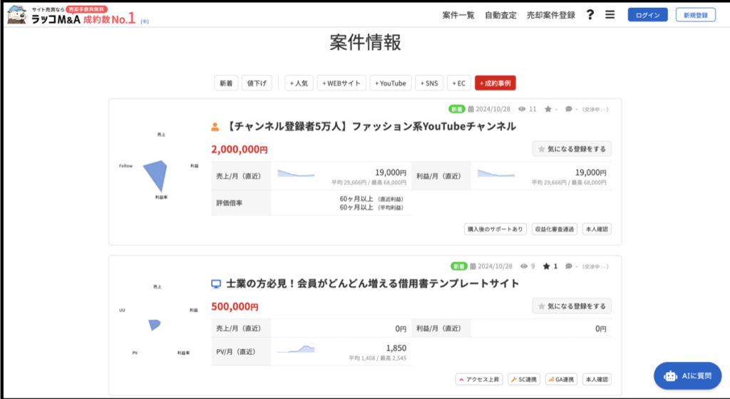 - MAではなく、SNSアカウントの買収もしており、累計の売却益10億円以上
